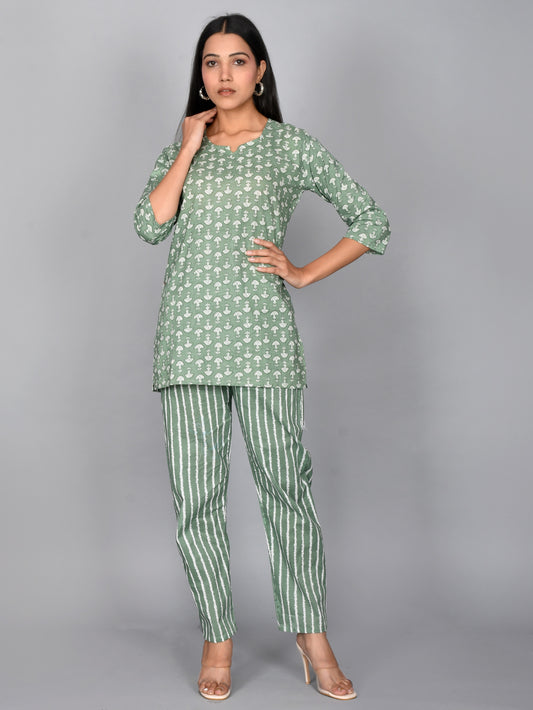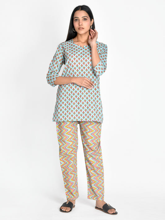 Women Pure Cotton Floral Printed Night Suit For Women & Girls