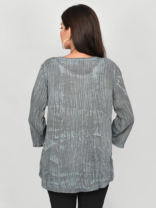 Grey Silk Crepe Printed Casual Top for Girls/Women