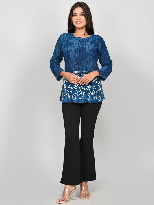 Navy Blue Silk Crepe Printed Casual Top for women/girls