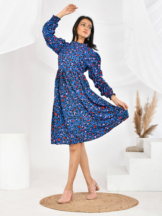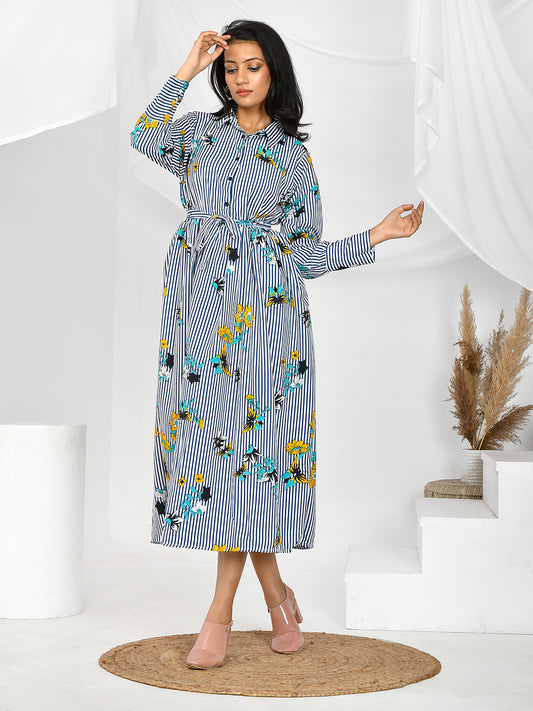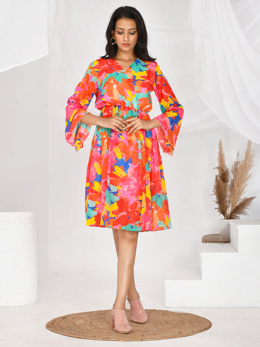 Floral Printed V-Neck Knee Length Western Dress For women/girls