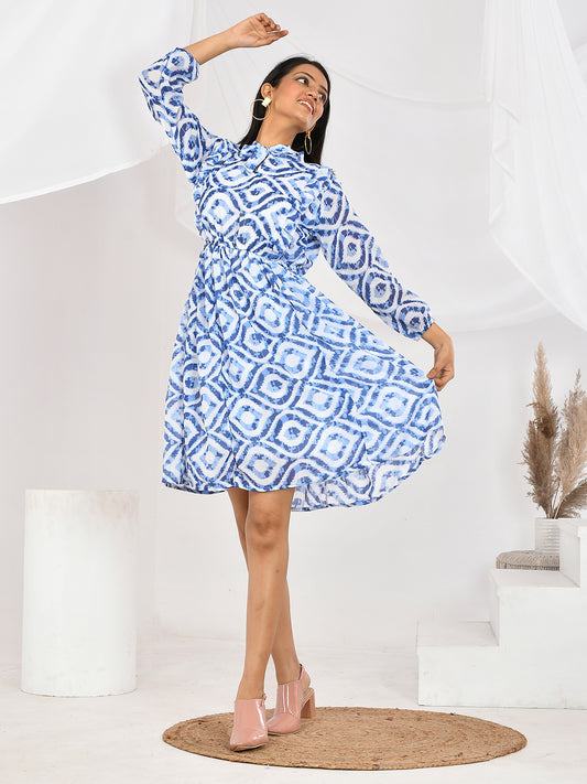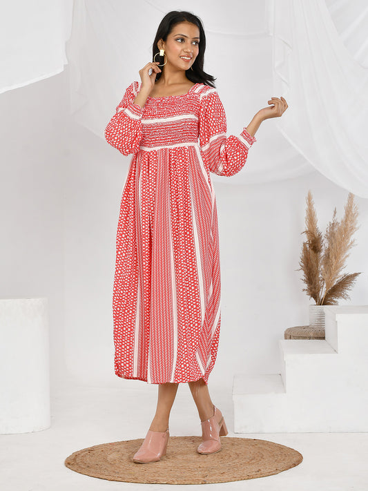 Geometric Print Elasticated Western Maxi Dress for Girls/Women