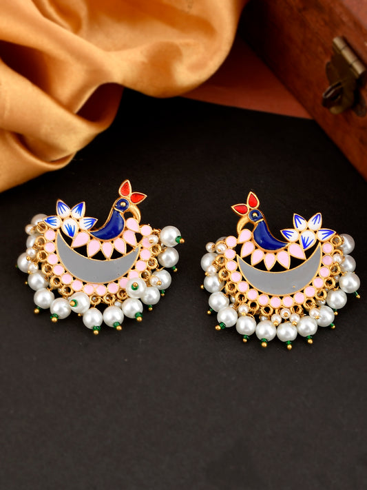 Gold Plated Multi Colored Peacock Design Meenakari Stud earrings