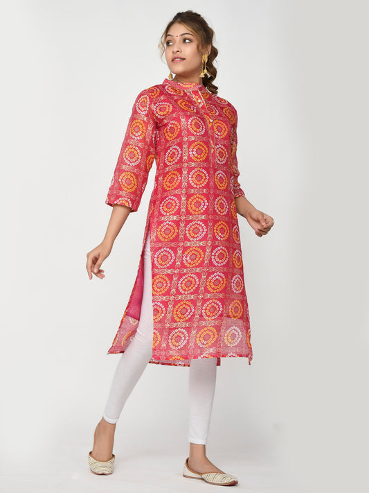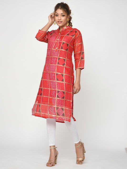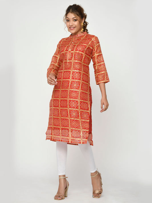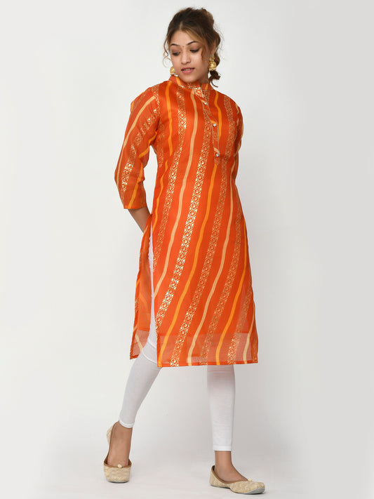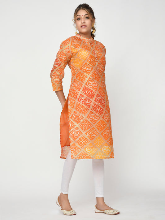 Women Orange & Yellow Chunari Bandhej Straight Aria Kurta