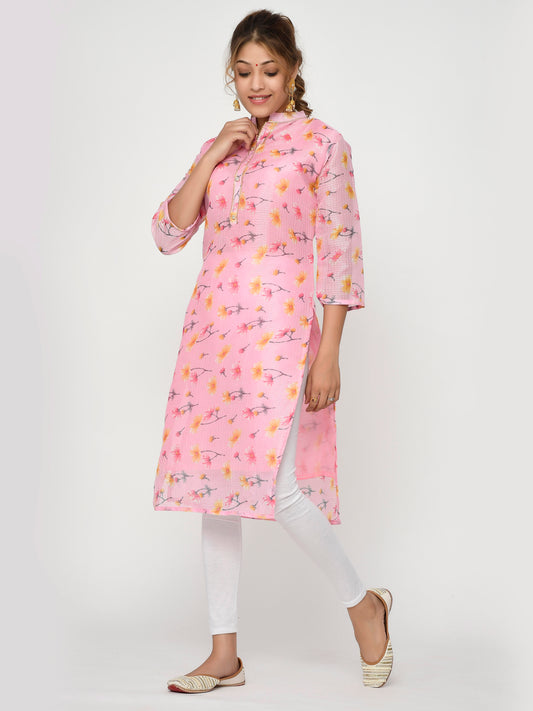 Women Peach & Pink Floral Straight Adiya New Kurta