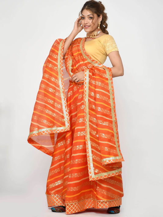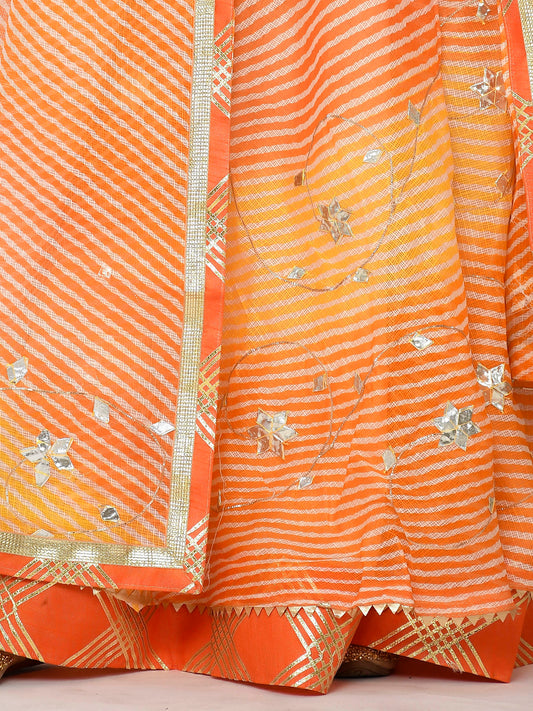 Kesarya Orange & Yellow Ready to wear Lehanga Dupatta with unstitched Blouse