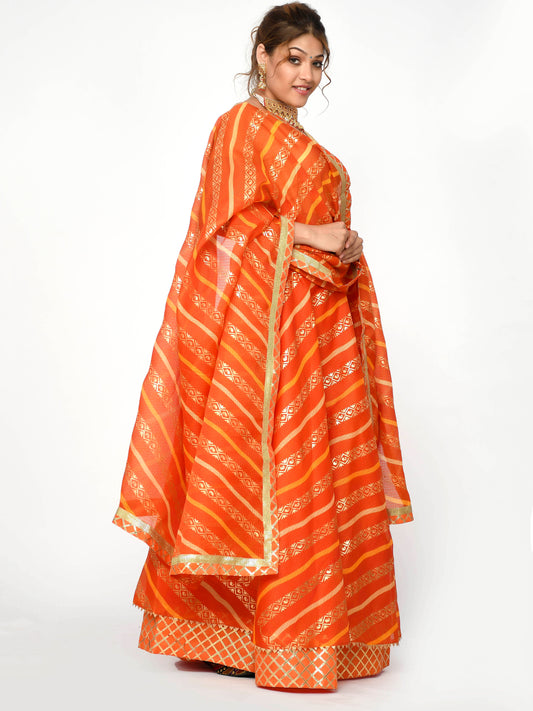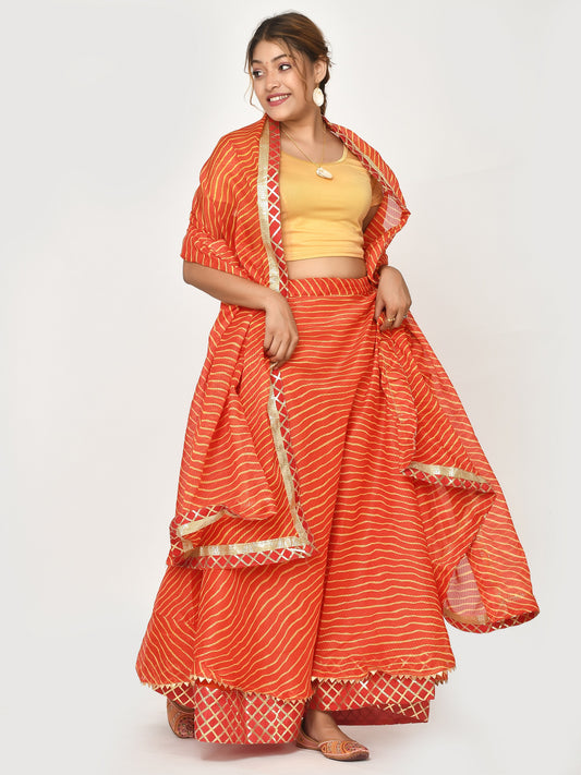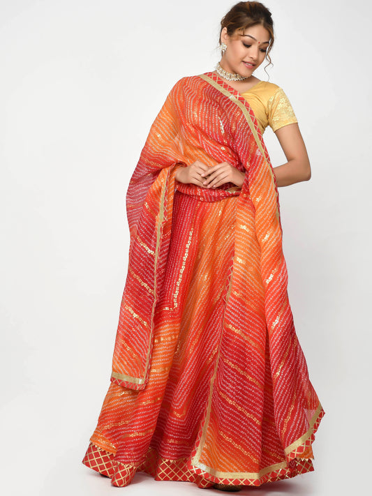 Kesarya Red & Yellow Leheriya Ready to wear Lehanga Dupatta with unstitched Blouse