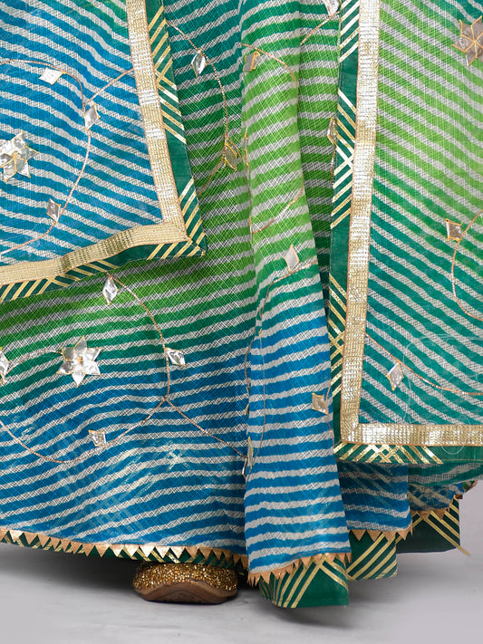 Kesarya Blue & Green Leheriya Ready to wear Lehanga Dupatta with unstitched Blouse