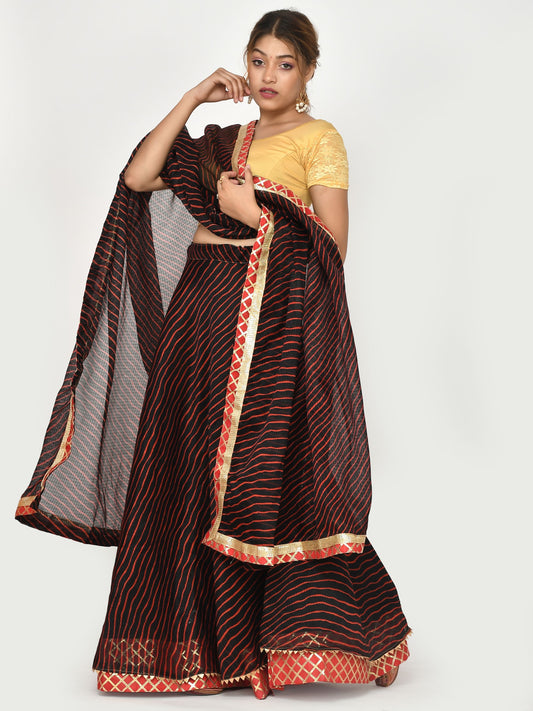 Kesarya Black & Red Leheriya Ready to wear Lehanga Dupatta with unstitched Blouse