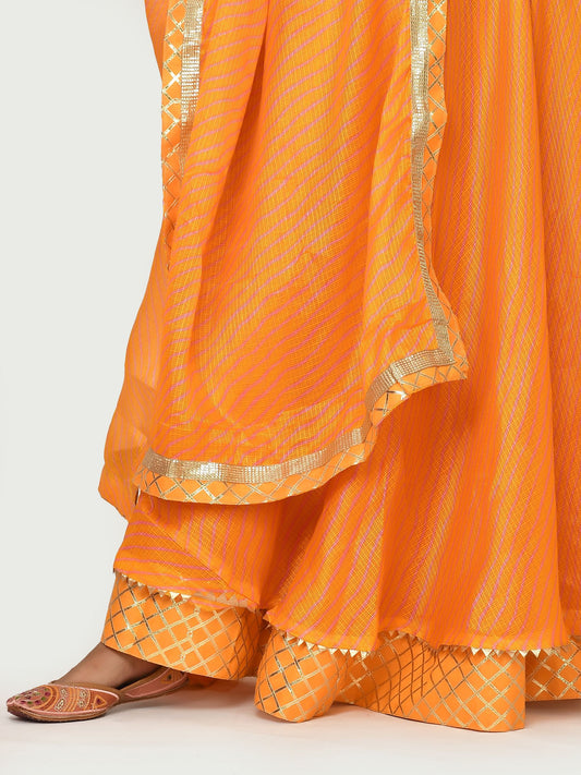 Kesarya Yellow & Gold Leheriya Ready to wear Lehanga Dupatta with unstitched Blouse