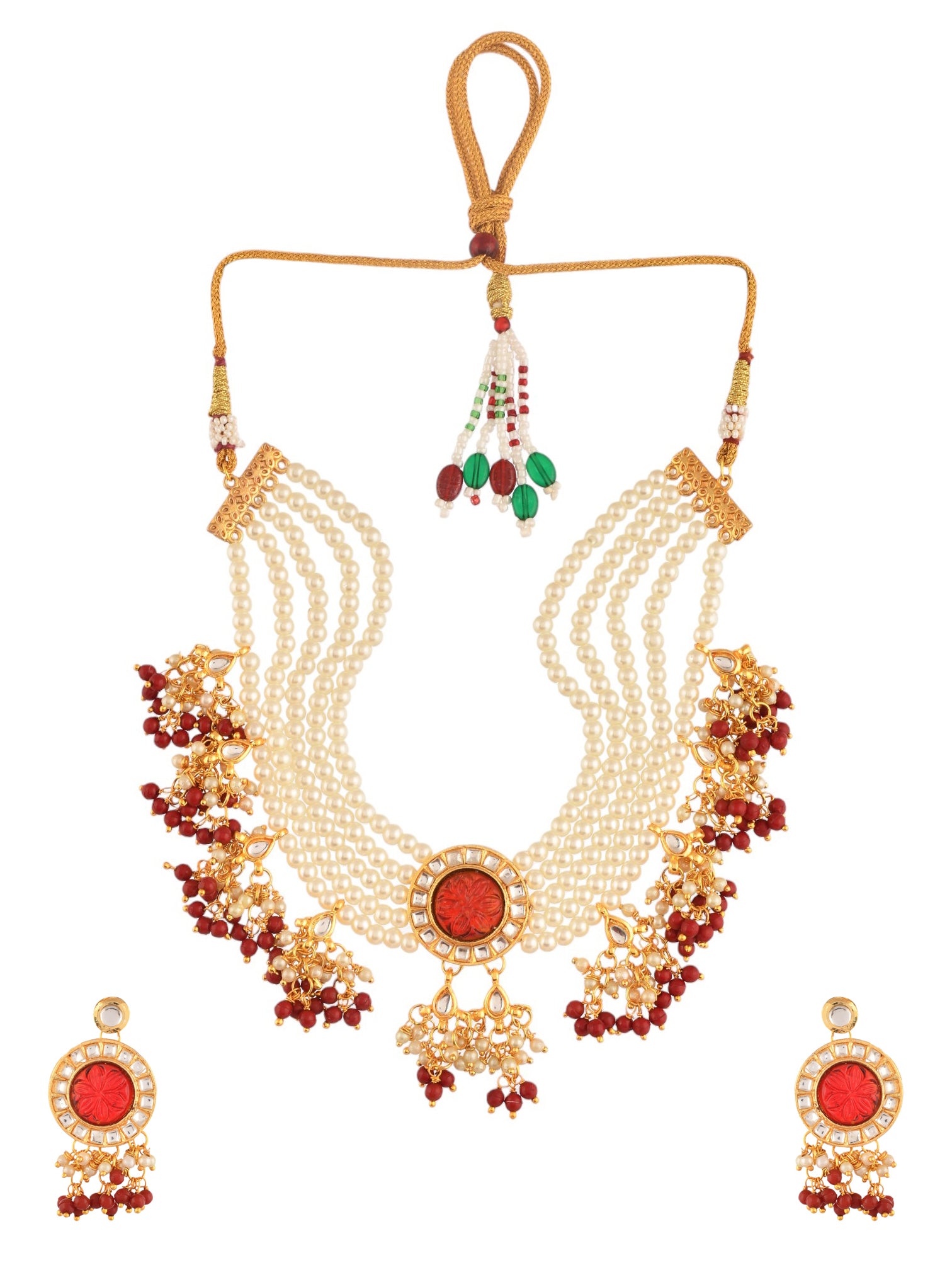 Elevate your bridal look with this exquisite Ethnic Kundan & Pearls Multi-Layer Necklace Set, a perfect blend of tradition and elegance. Featuring intricate Kundan craftsmanship and delicate pearl embellishments, this statement jewellery set exudes royal charm.