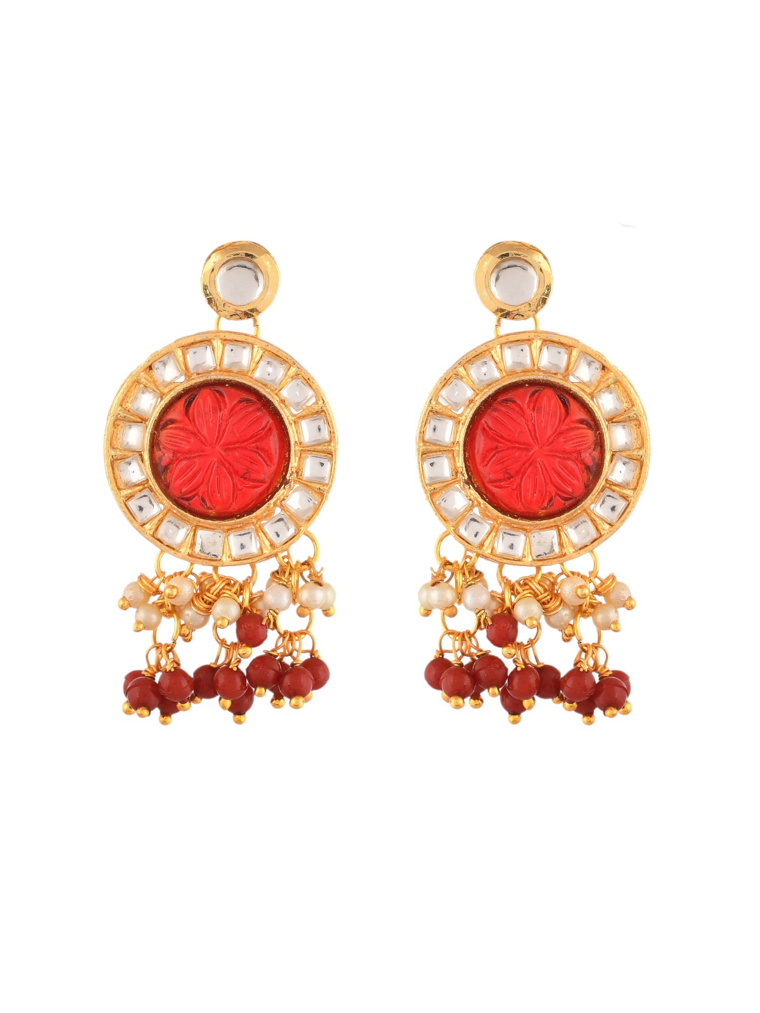 Designed for brides and festive occasions, the multi-layered necklace drapes beautifully, adding grace and grandeur to any ethnic attire. The matching earrings complete the set, offering a sophisticated touch.