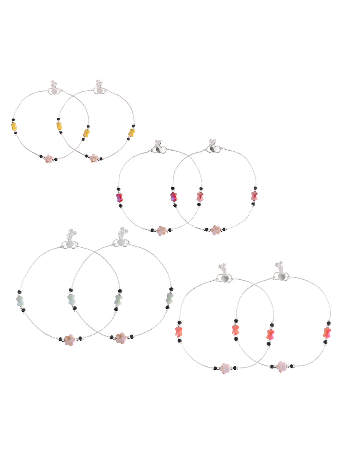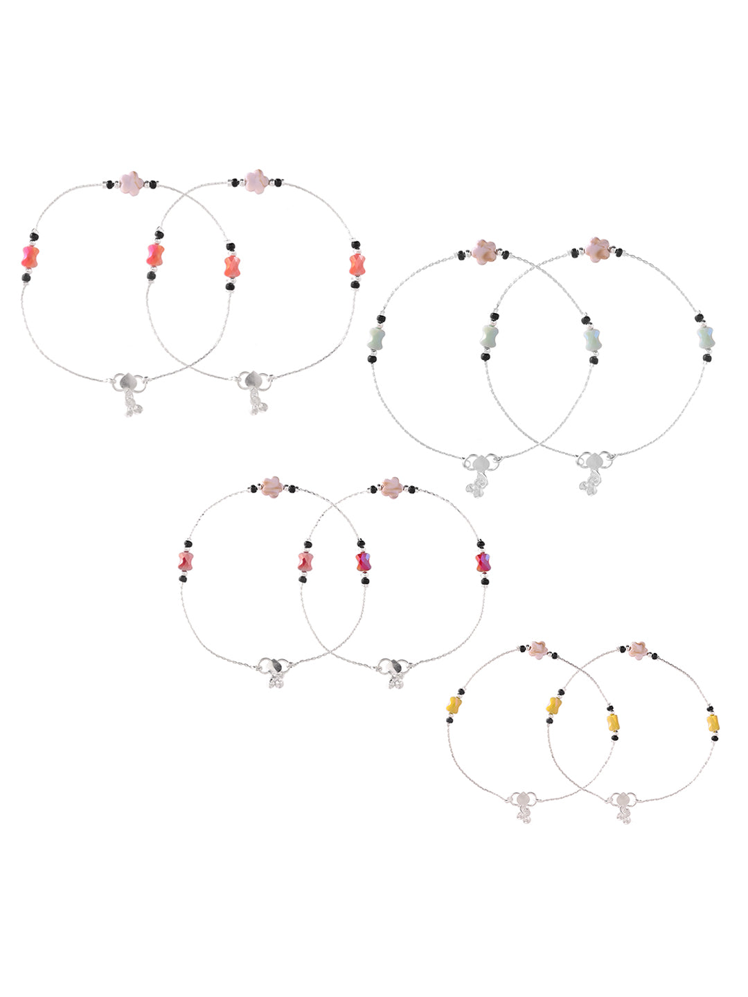 This Multicolour Floral Beaded Silver-Plated Adjustable Anklet Set adds playful elegance and vibrant style, perfect for women and girls who love versatile, colourful jewelry.