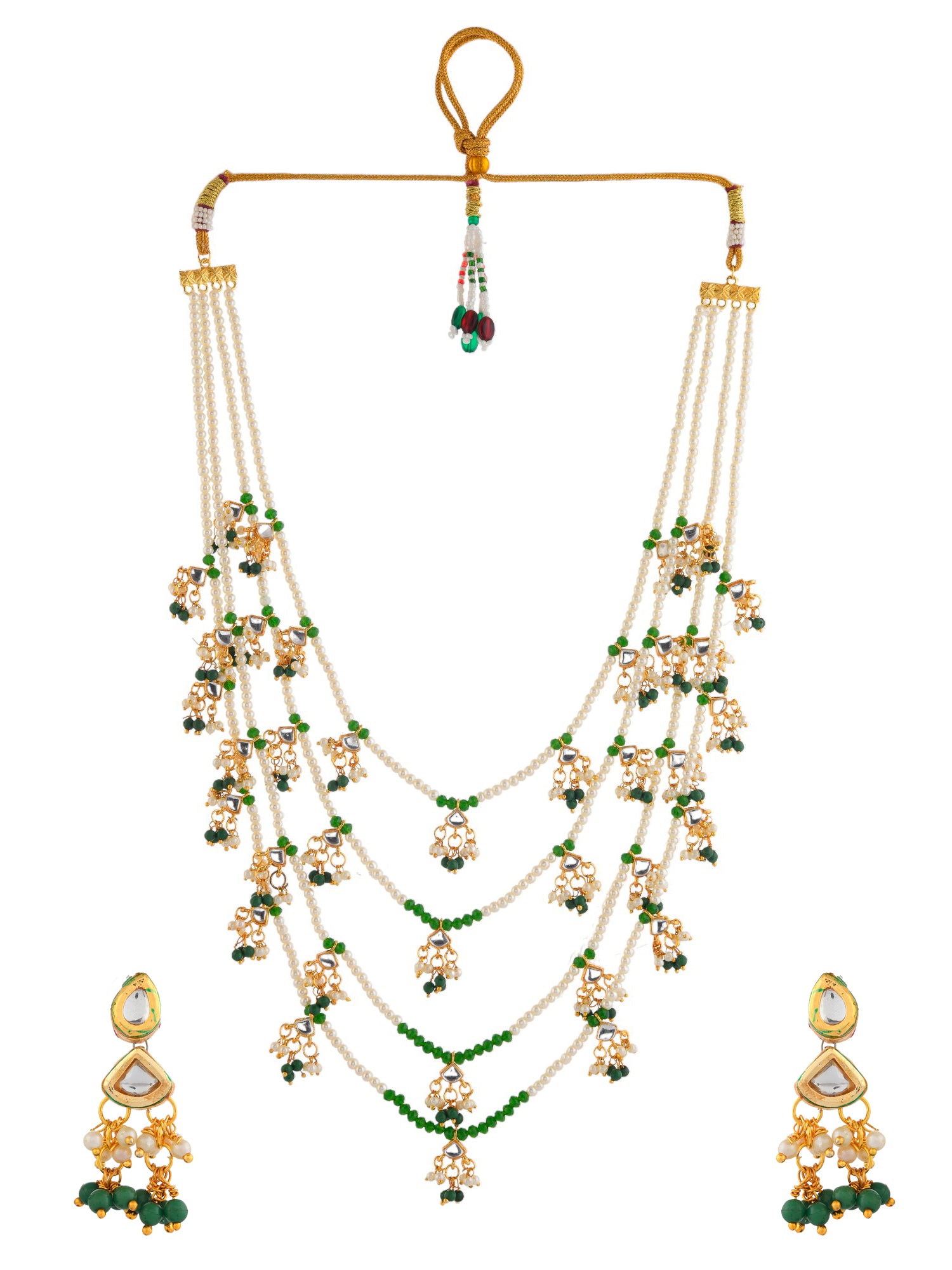 Crafted with high-quality materials and impeccable artistry, this Kundan pearl necklace set ensures durability and comfort, allowing you to shine effortlessly. Whether you're attending a grand wedding or a festive gathering, this layered pearl jewellery set exudes grace and luxury.