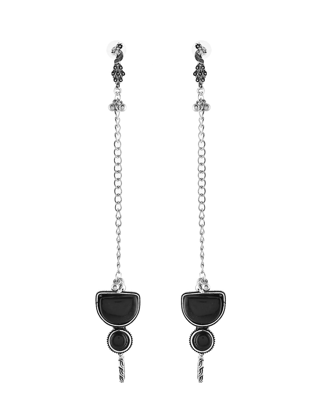 This stunning Oxidised Silver Ear Cuff with Chain Earring blends tribal charm with modern boho style.Featuring a beautifully carved oxidised cuff attached to a delicate chain and an intricately designed peacock stud, this piece adds a bold, statement look.Lightweight and comfortable, it’s perfect for fashion-forward women who love unique accessories.