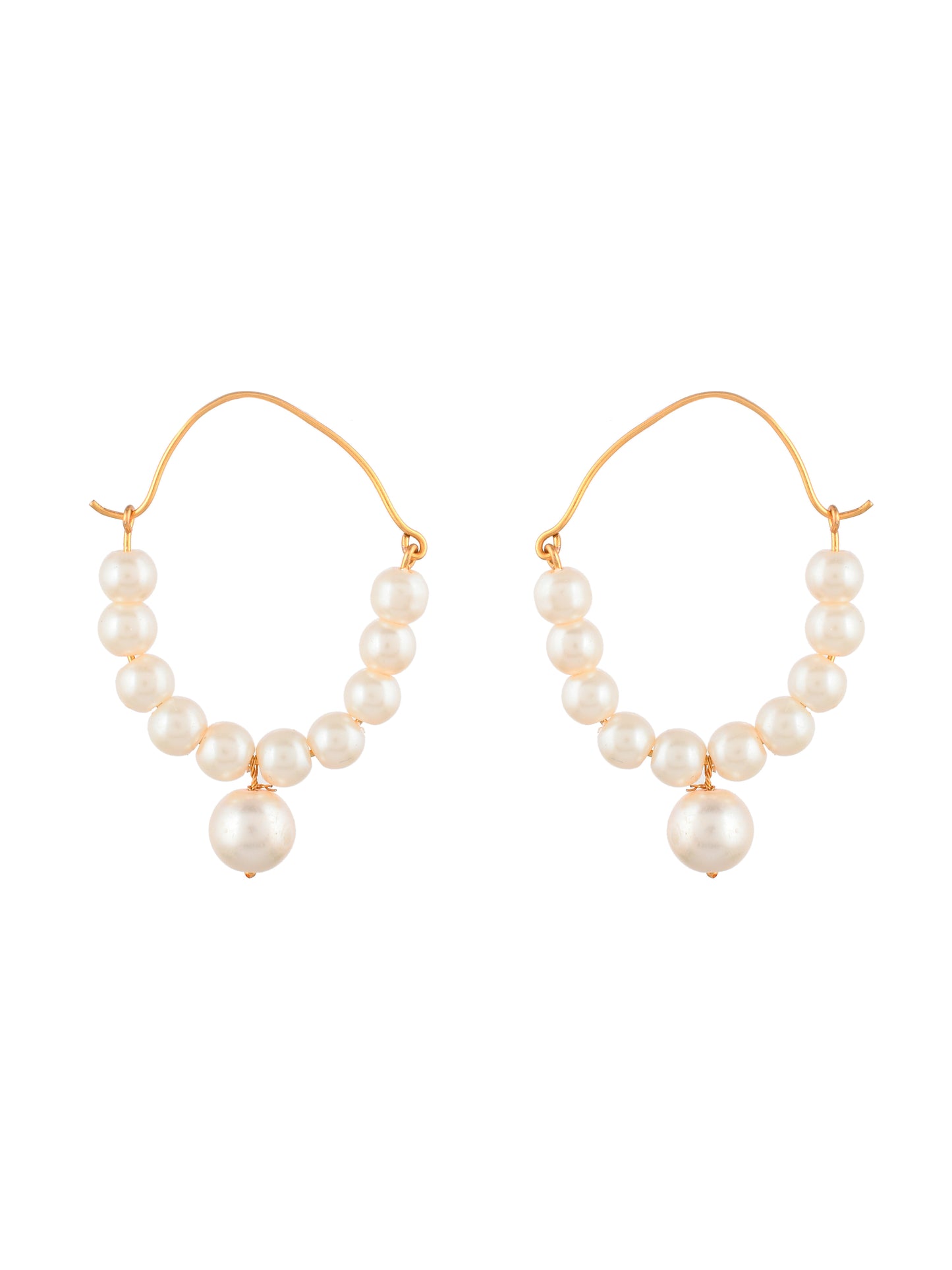 Shop These  Beautiful classic Gold Plated Pearl Hoop Earrings offer a superior level of craftsmanship and style.  Perfect for any occasion. Gold Plated Pearl Hoop Earrings secured with post-back closure.