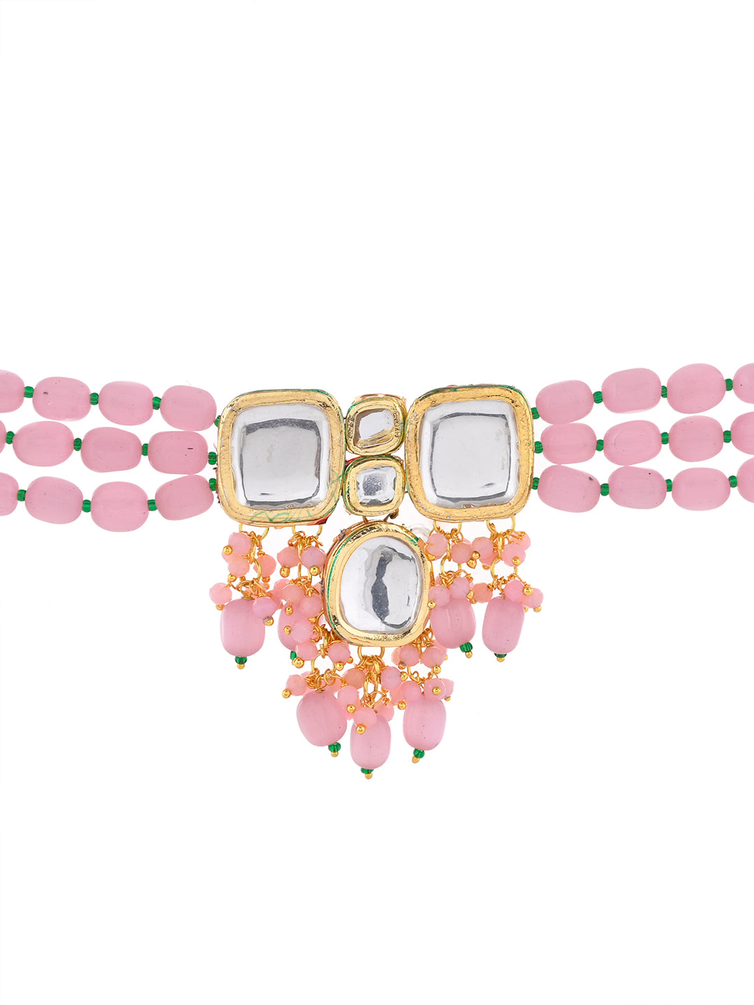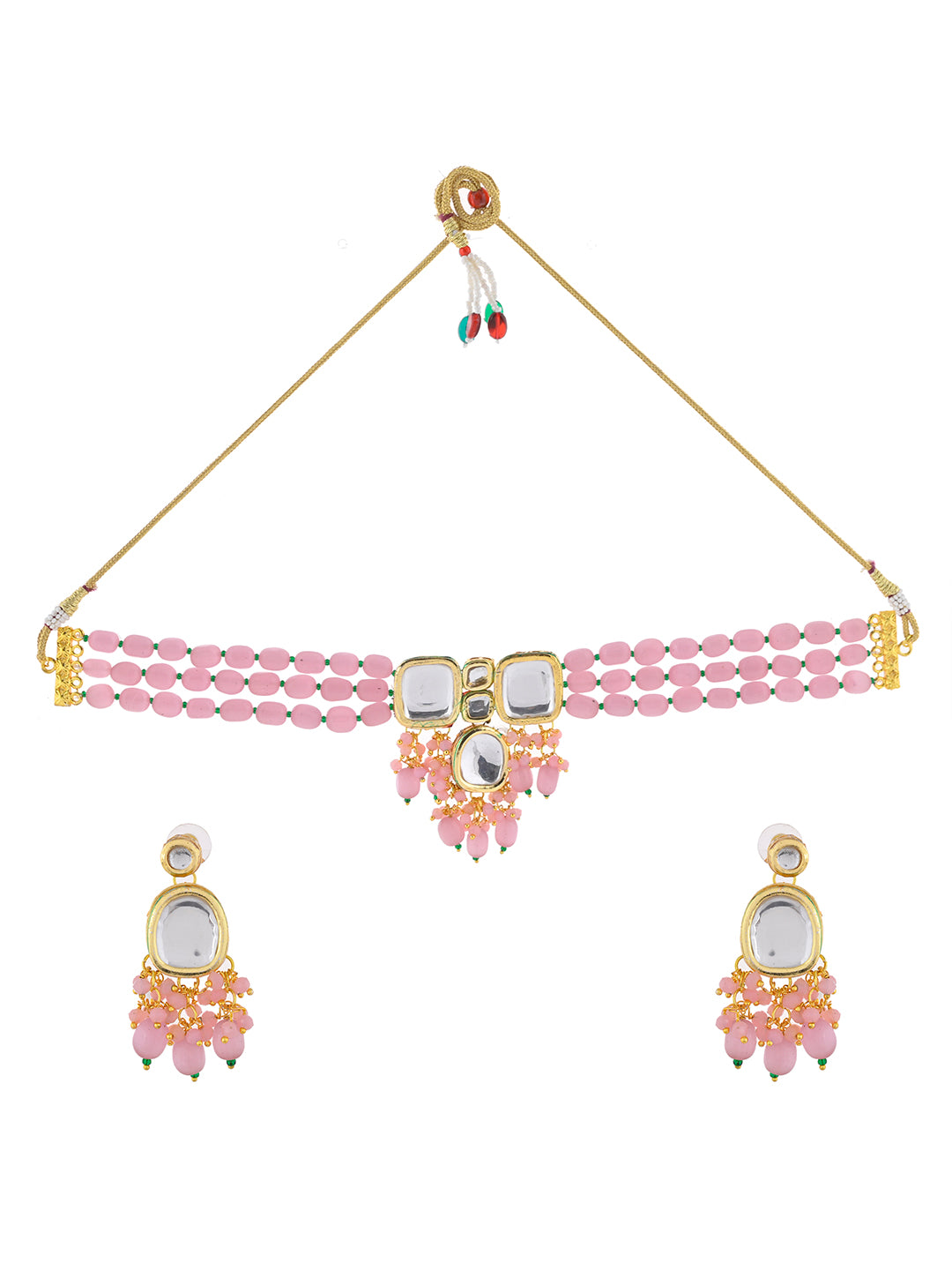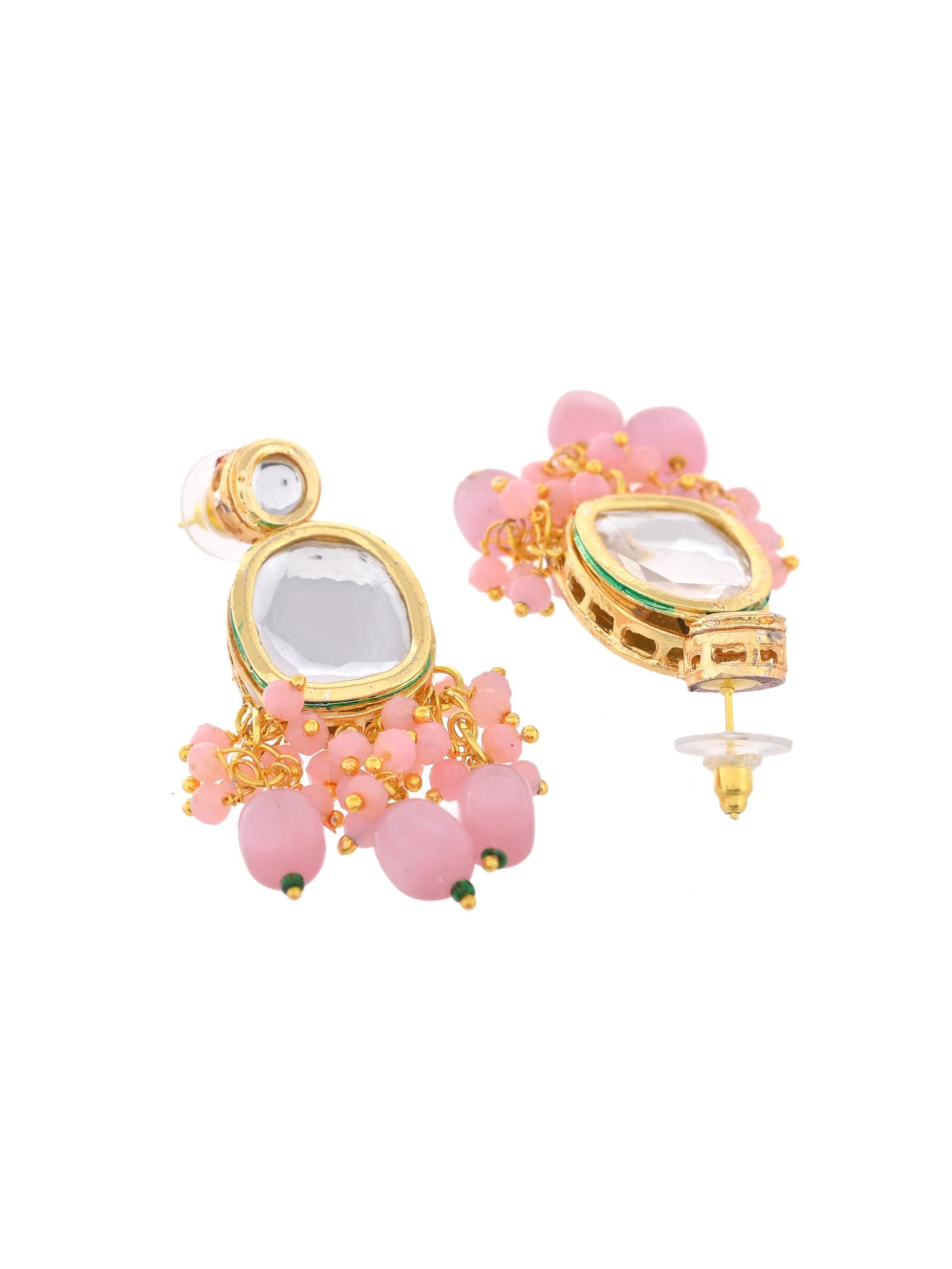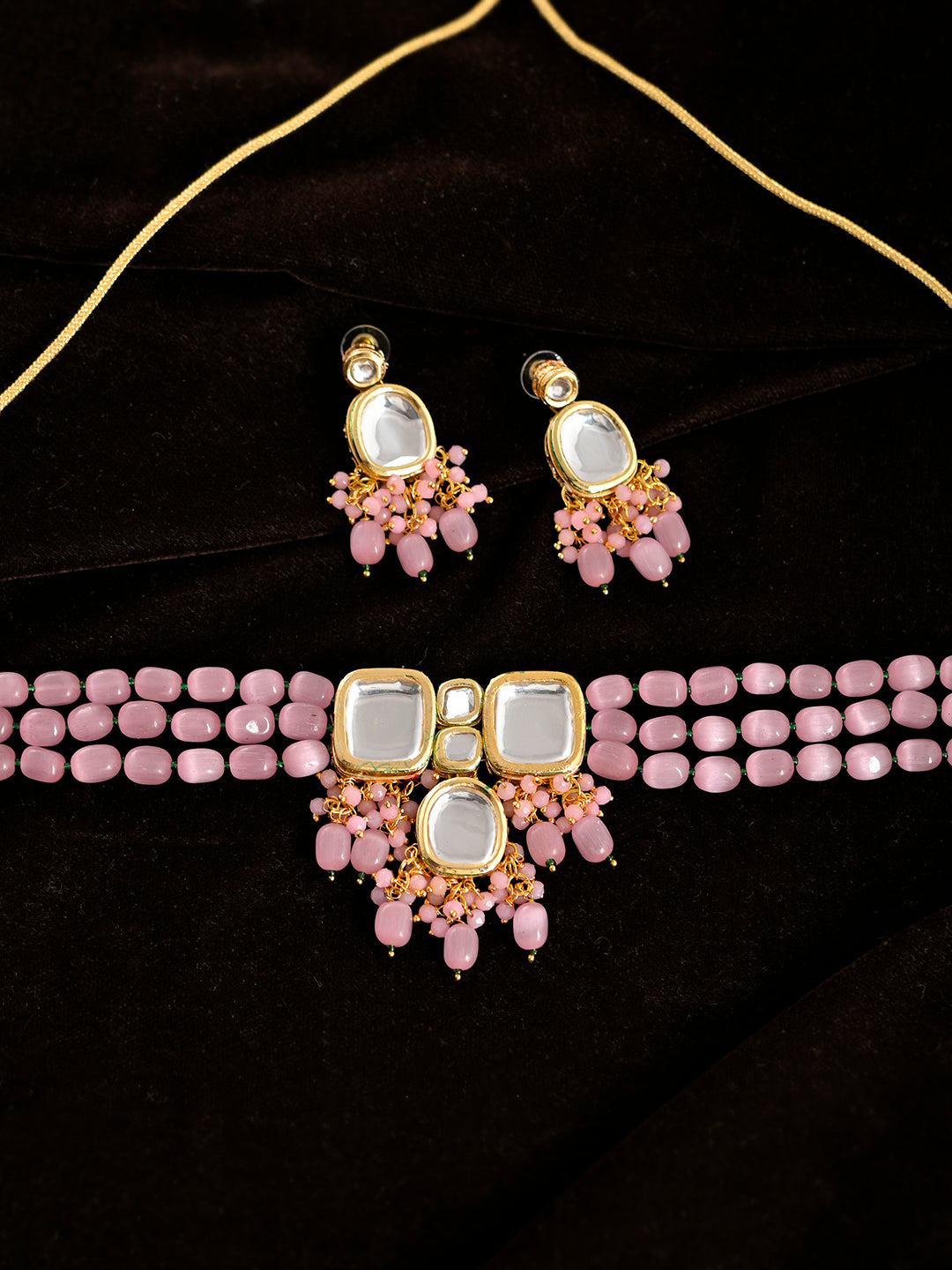 Gold-Plated Pink Pearl Jewellery Set with Earring – Traditional Elegance Reimagined