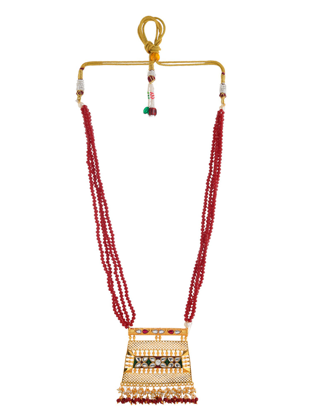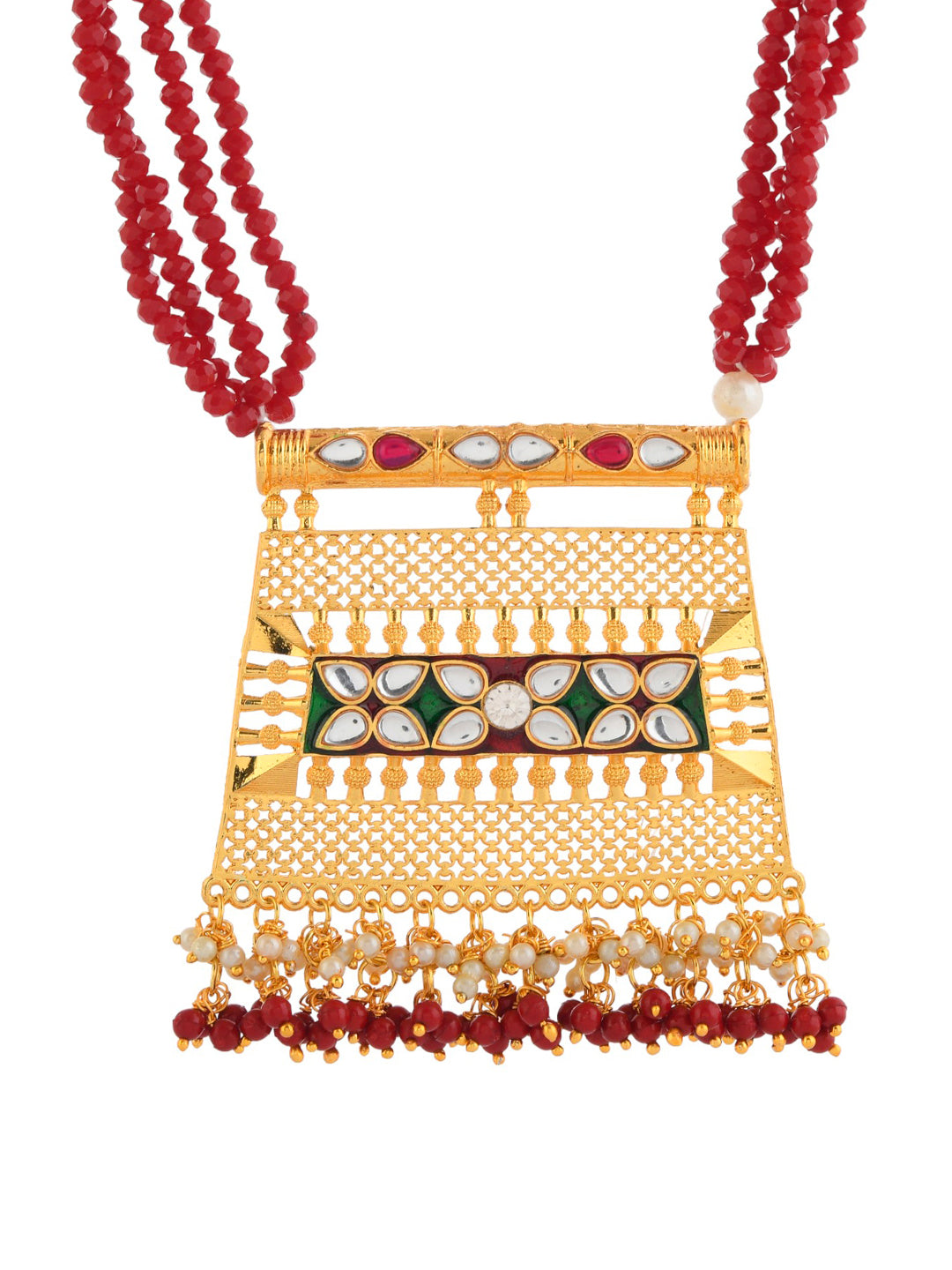 Enhance your elegance with this exquisite Gold-Plated & Red Beaded Necklace and Earringstimeless piece inspired by traditional Indian craftsmanship. Designed for women who appreciate classic beauty, this jewellery set is perfect for weddings, festive occasions, and cultural celebrations.