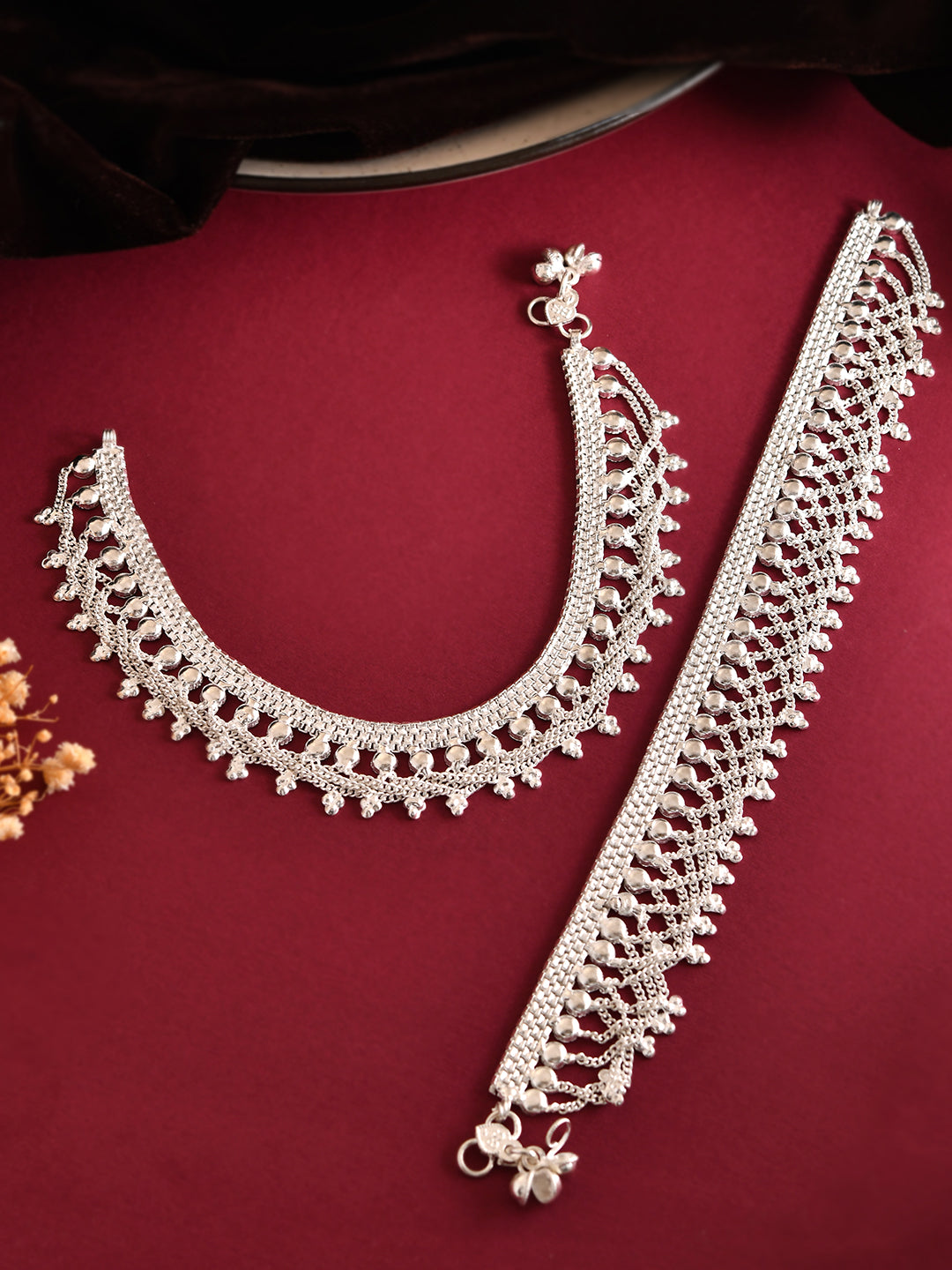 Heavy Traditional Silver Plated Bridal Anklet & Payal For Women
