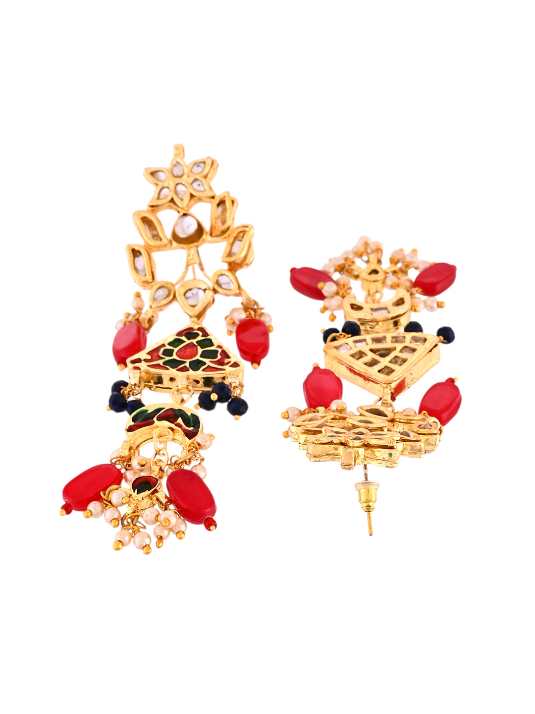 The matching earrings complete the set with detailed Kundan work and coordinated bead drops.