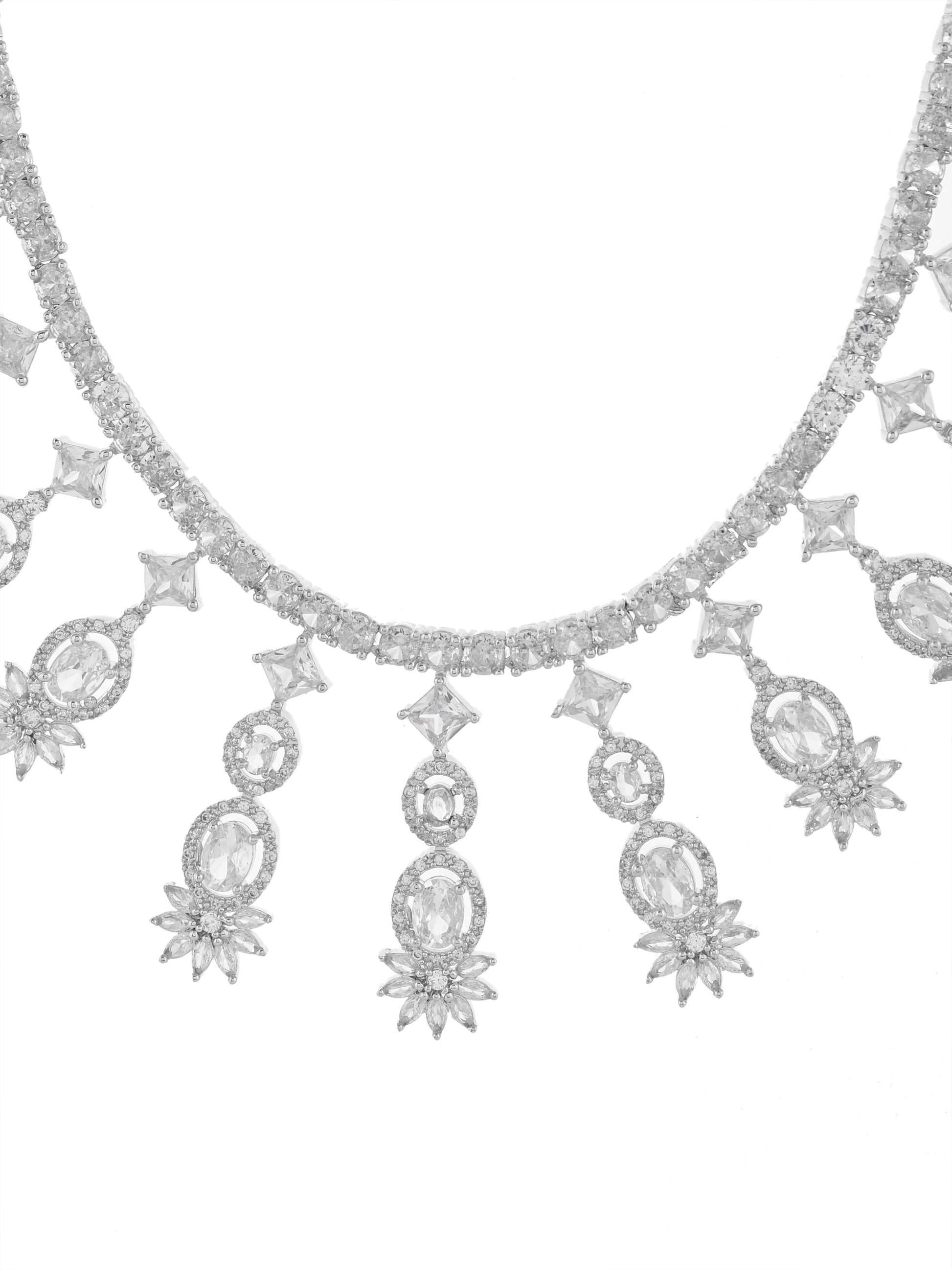 Radiant Diamond Necklace With Earrings | AD Jewllery Set