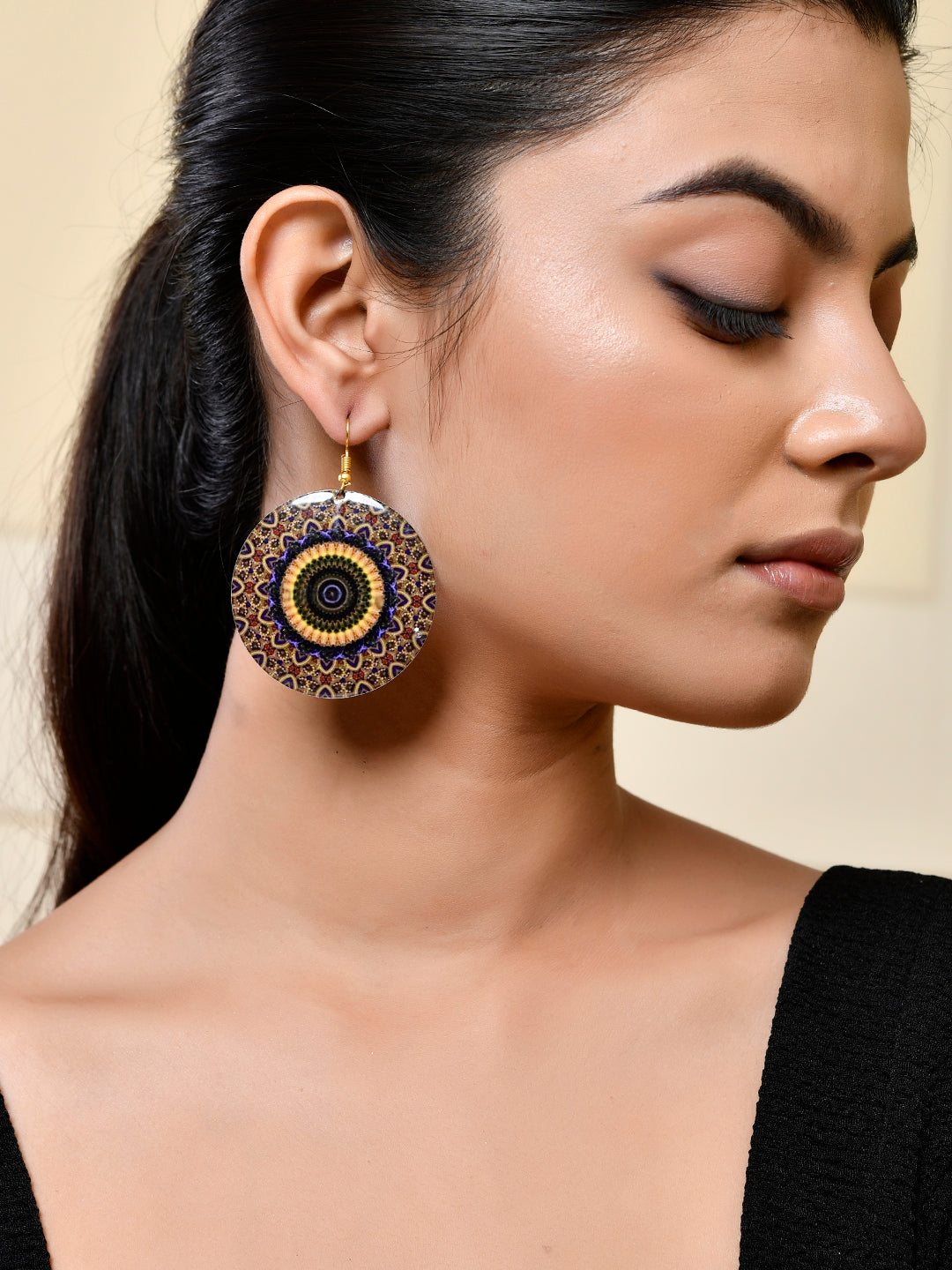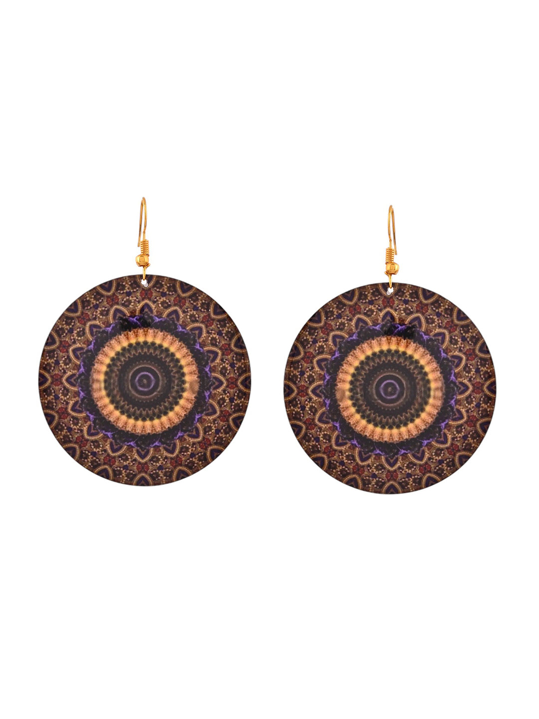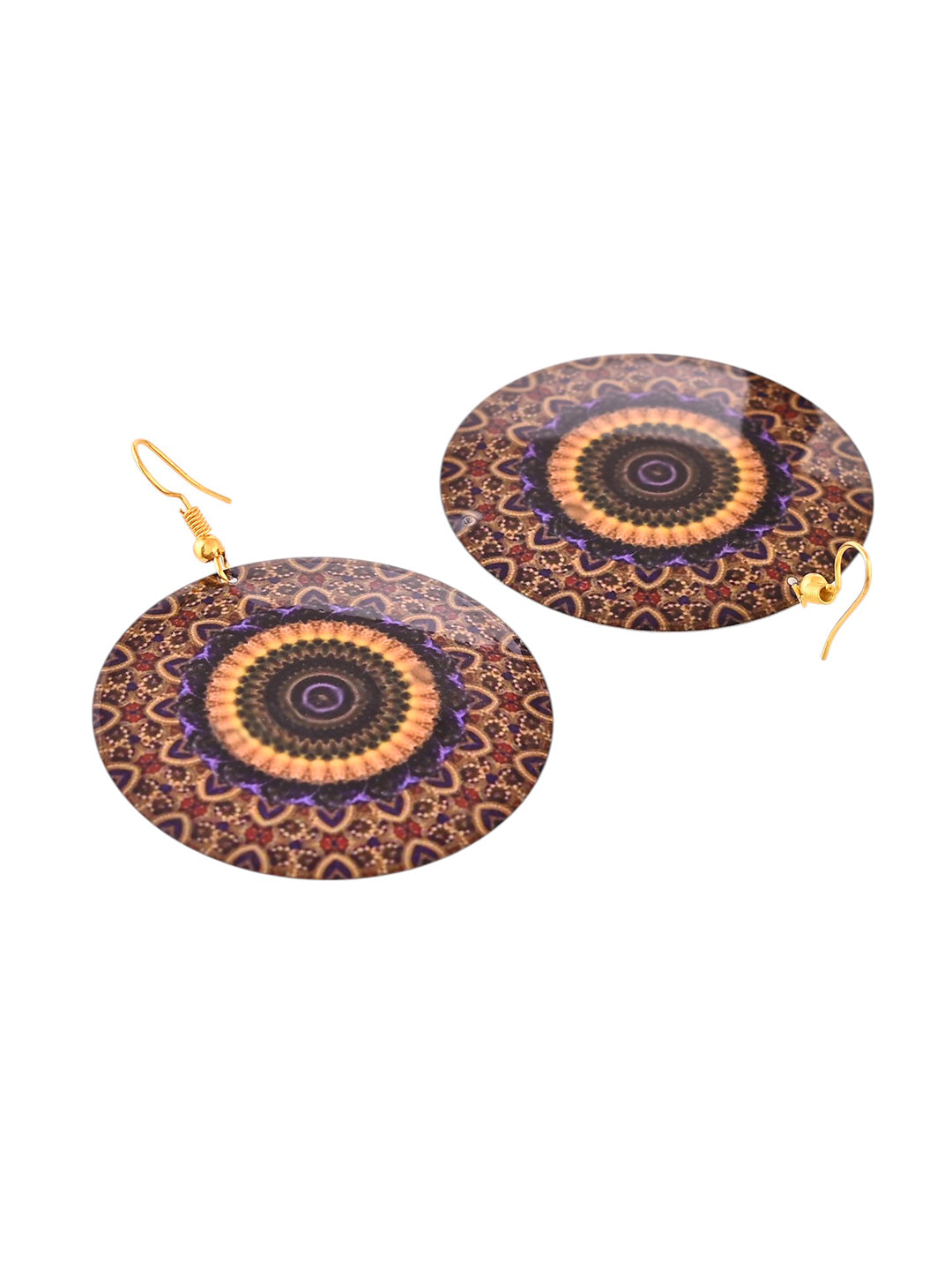 Rhodium-Plated Mandala Pattern Round Earrings For Women