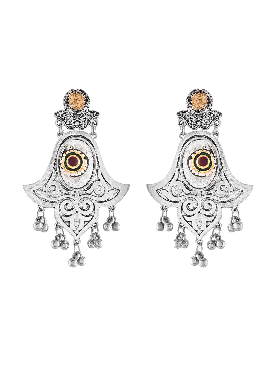 Add a touch of elegance to your ethnic look with this Silver Oxidised Tribal Necklace Set, featuring a beautifully carved Afghani-style pendant adorned with coloured stones and hanging pearl charms. Paired with matching drop earrings, this lightweight jewellery set is perfect for festive wear, traditional functions, weddings, parties, Garba, and daily styling. Crafted with premium oxidised alloy, the necklace set offers durability, comfort, and timeless charm.