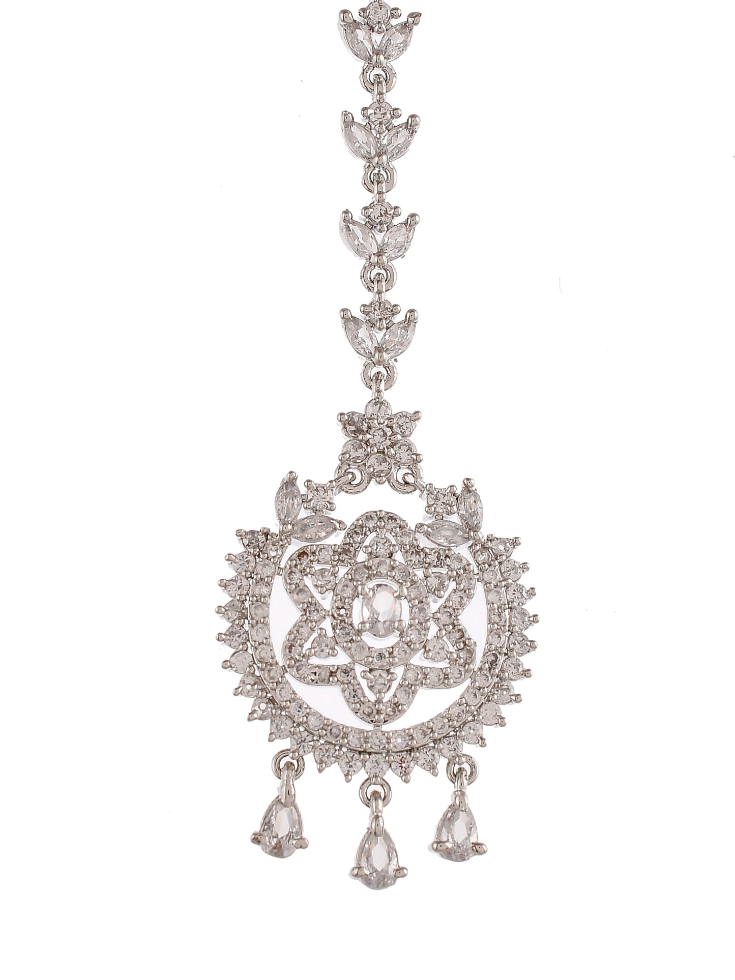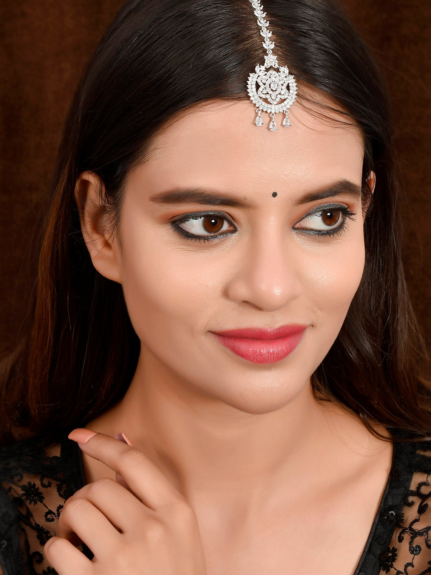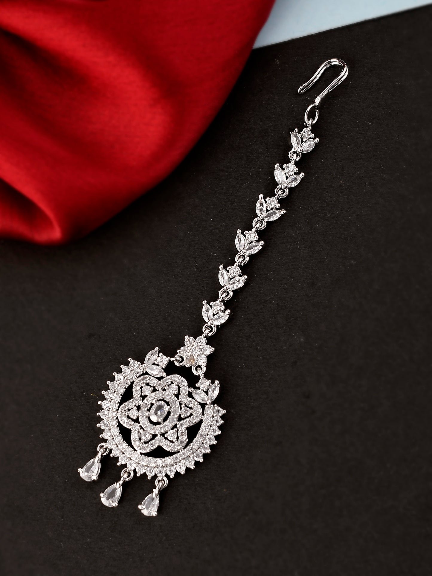 Silver Plated American Diamond Studded Handcrafted Maang Tikka