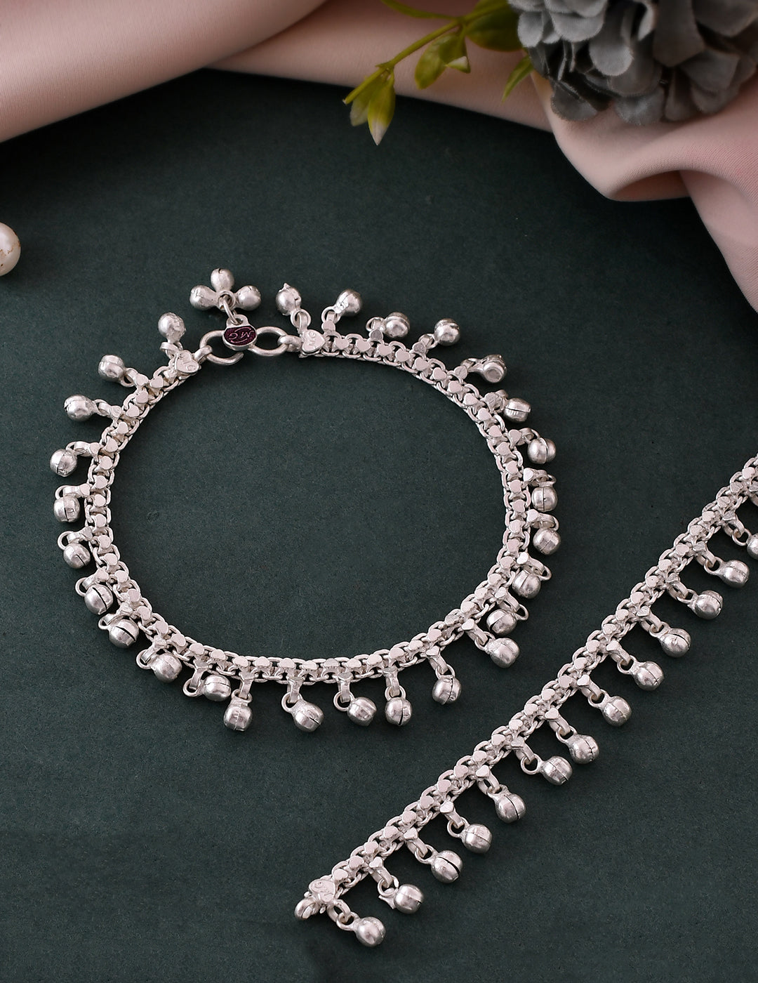 Silver-Plated Brass Ghungroo Anklet Set For Women | Lightweight Daily Wear Ethnic Payal