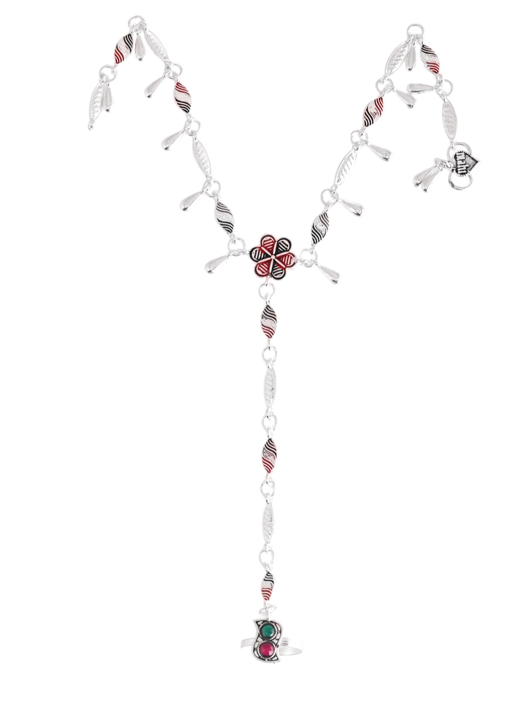 This silver-plated toe ring attached anklet pair is a perfect combination of tradition, elegance, and contemporary style, making it an ideal accessory for women and girls who love to adorn their feet with ethnic charm.