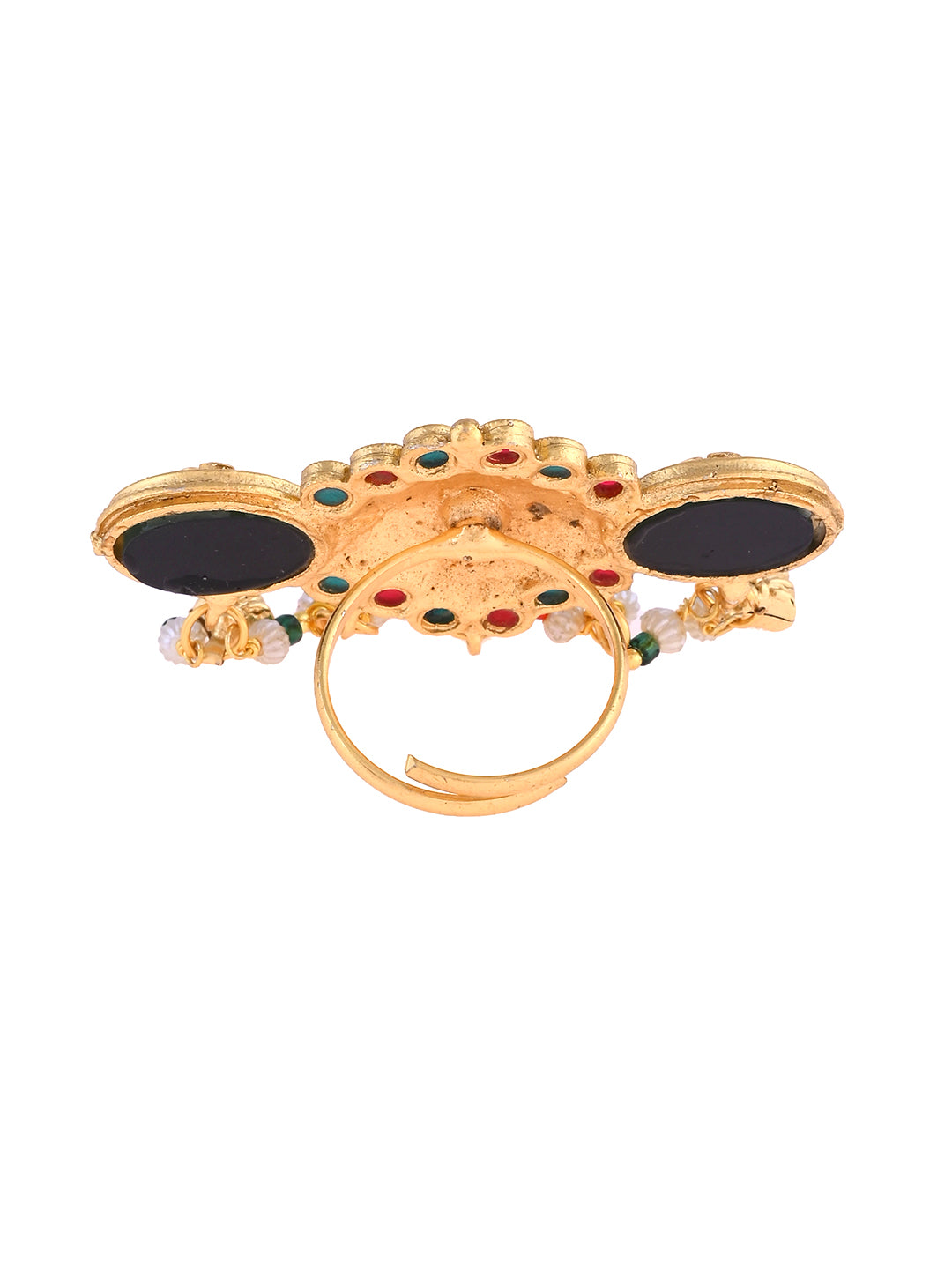 Traditional Gold Finish Temple Style Adjustable Ring For Women