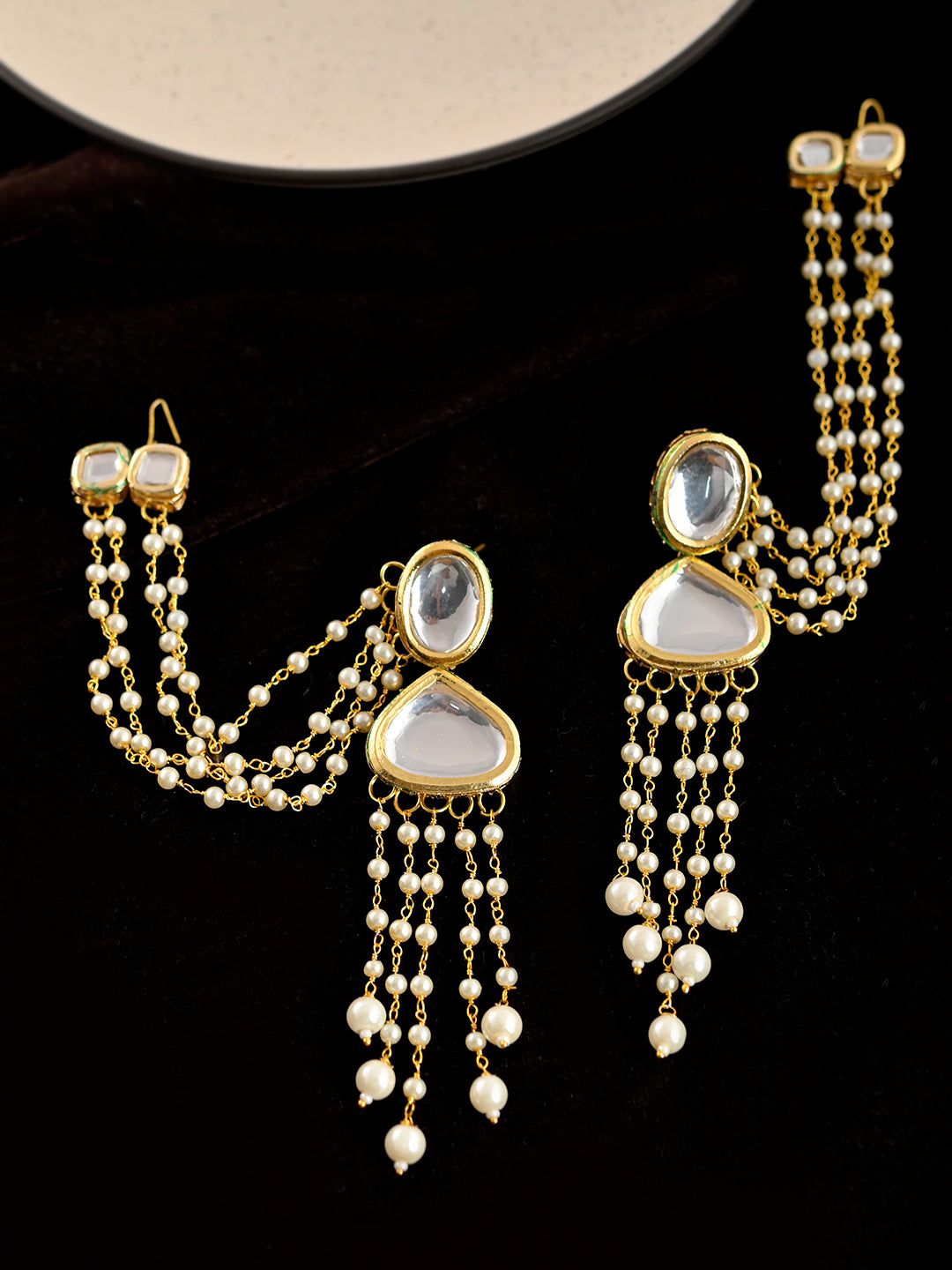 White Pearl & Gold-Plated Earrings for Women – Timeless Elegance with a Traditional Touch