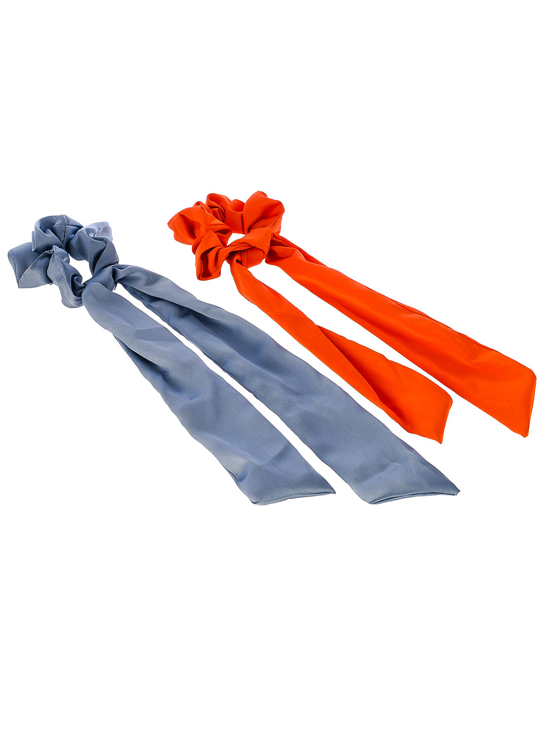 Women Green & Orange Colored Set of 3 Satin Ponytail Holders