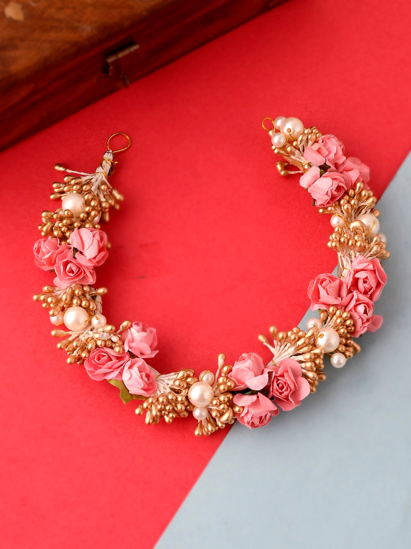 Women Red & Gold Toned Embellished juda Hair Accessory set